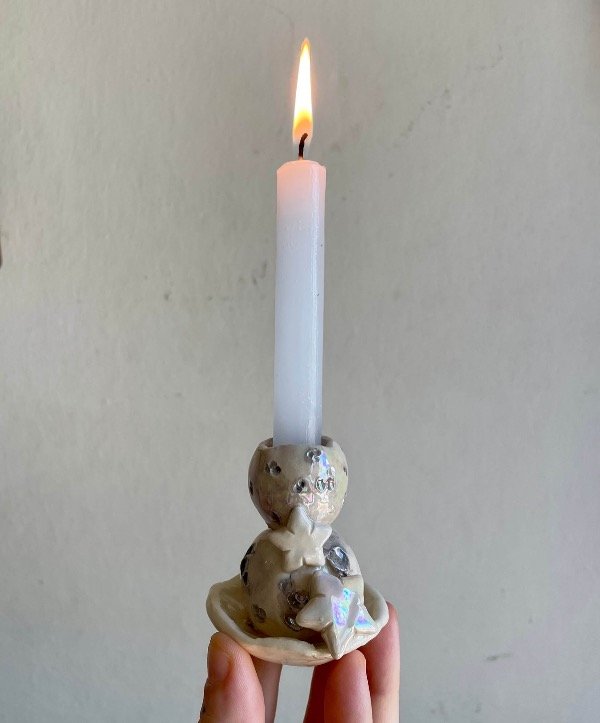 Incluye candelabro modelado a mano decorado con la misma técnica que el